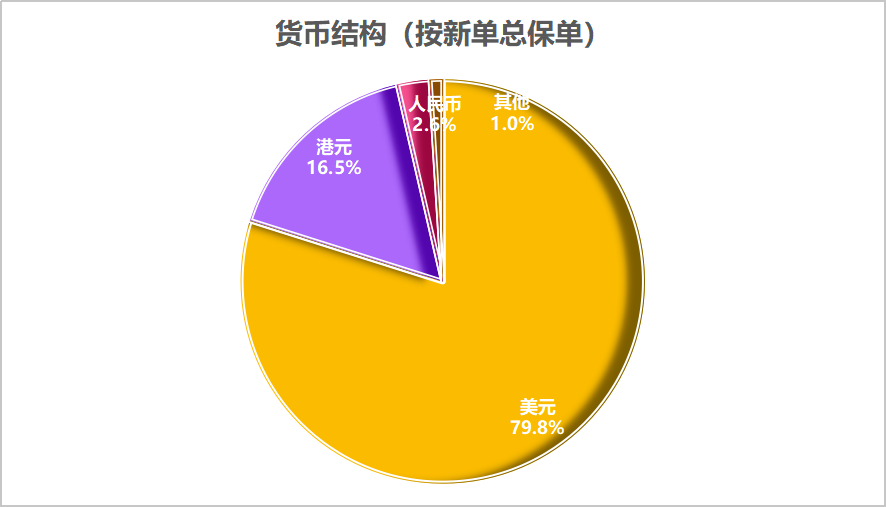 货币结构:美元保单称王,占近 80%;港元约 16.5%