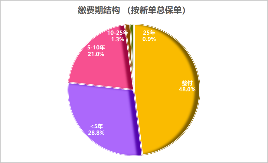 ⏳ 缴费期结构:五年内短缴保单占近八成,说明市场主流是储蓄+分红型保单