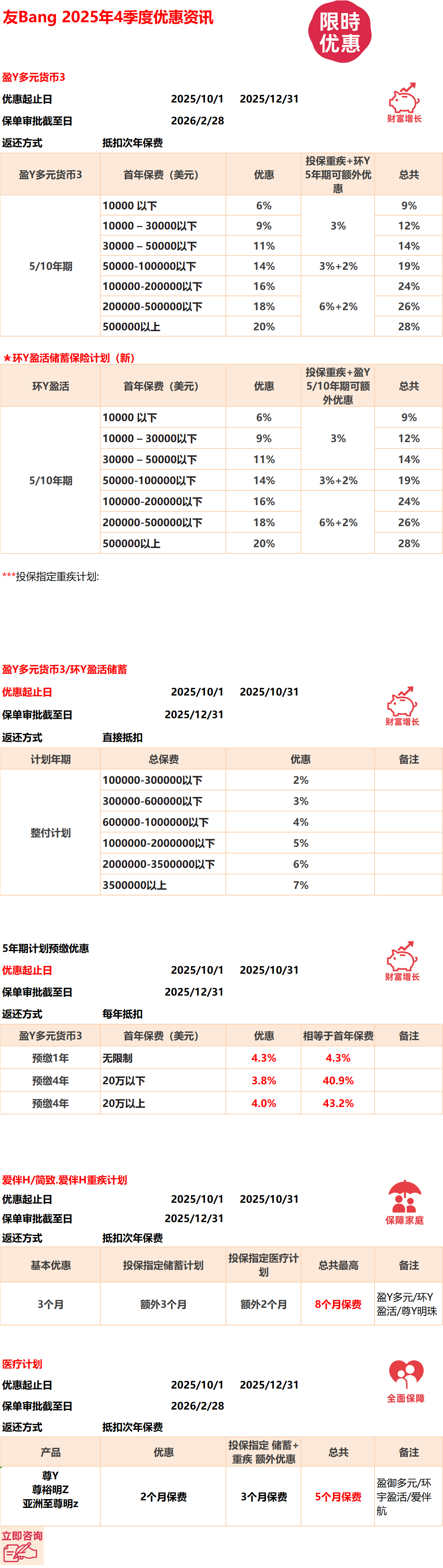 友Bang 2025年4季度优惠资讯 环Y盈活最高优惠