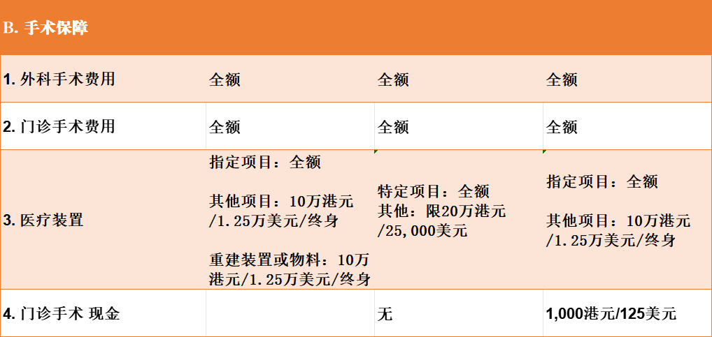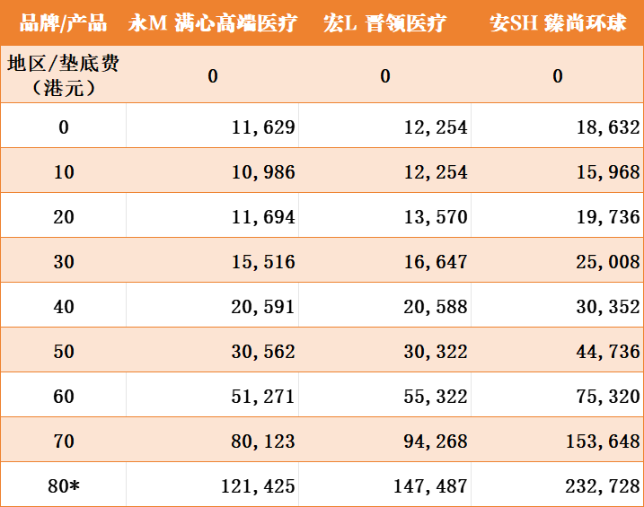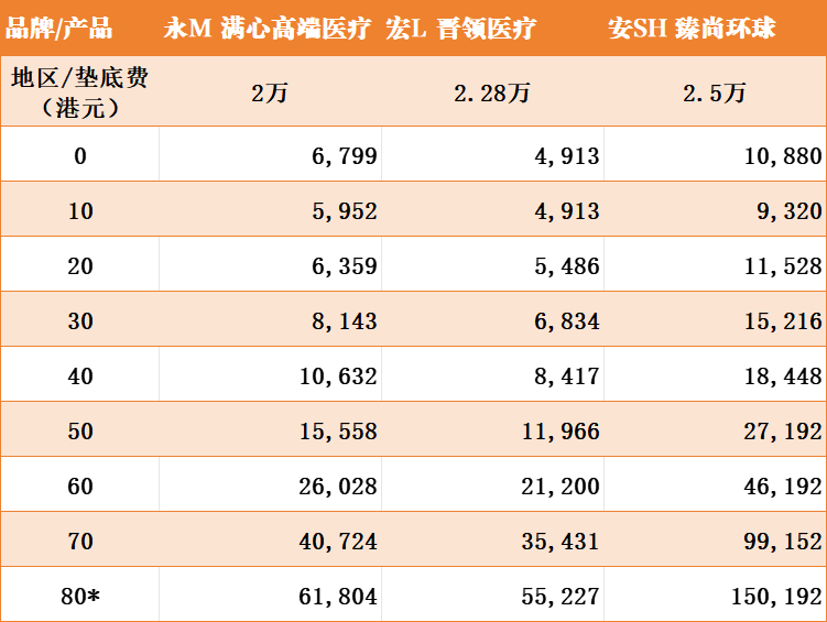 - 器官捐赠手术:宏L最高为70万港币,永M为50万港币,安Sh未列明。