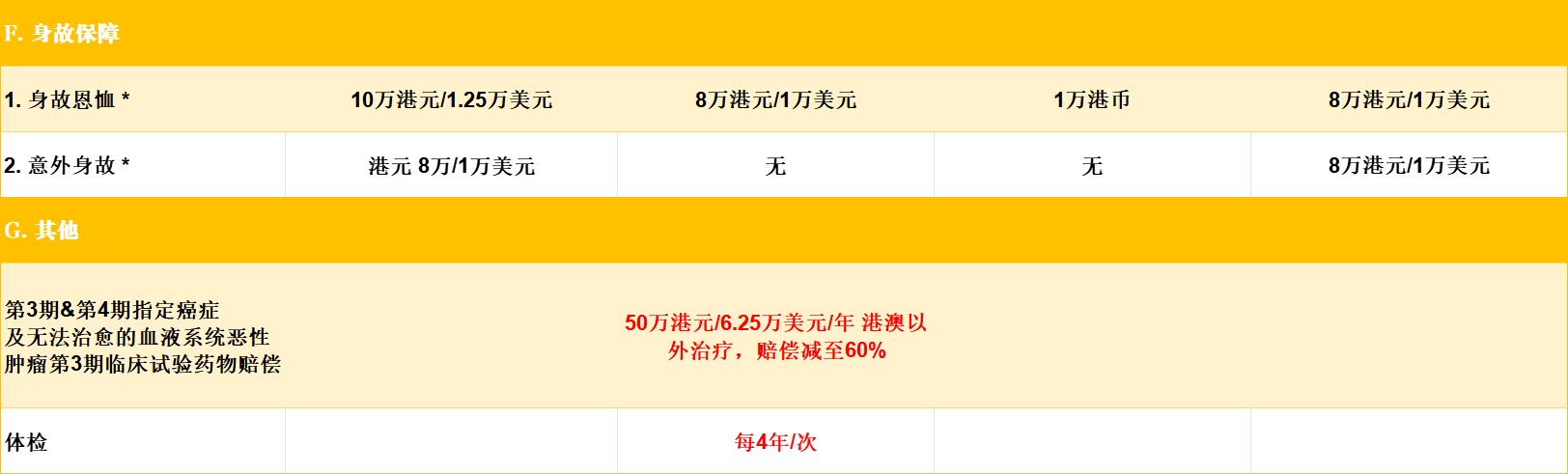 🔹 每4年一次体检:仅友B提供。