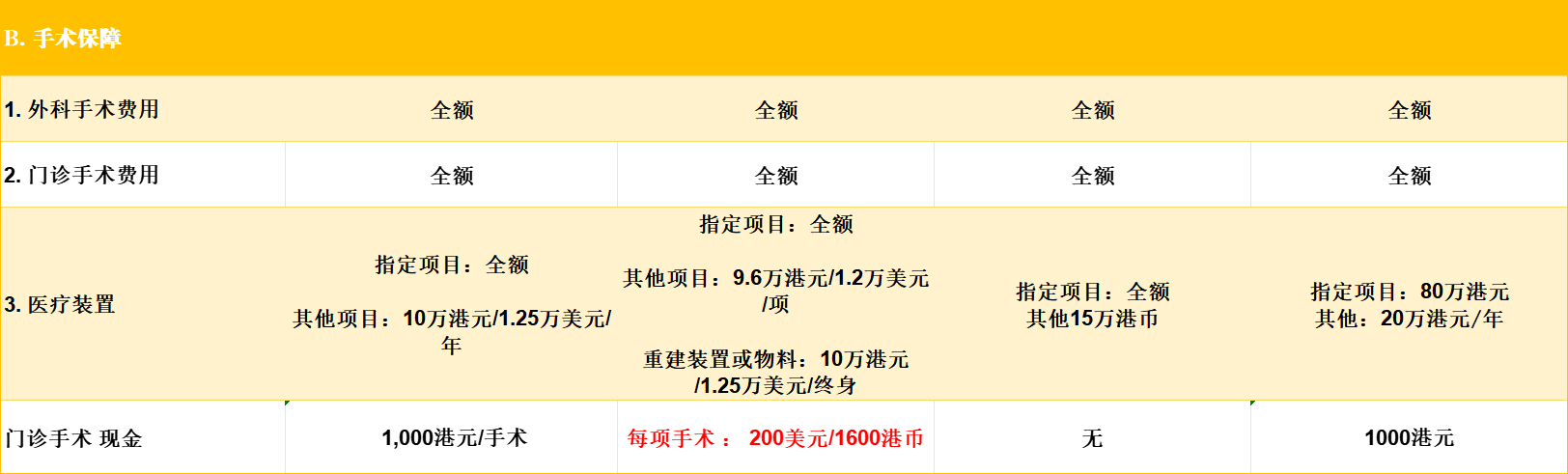 ✅ 医疗装置与门诊手术现金:友B保障最优。